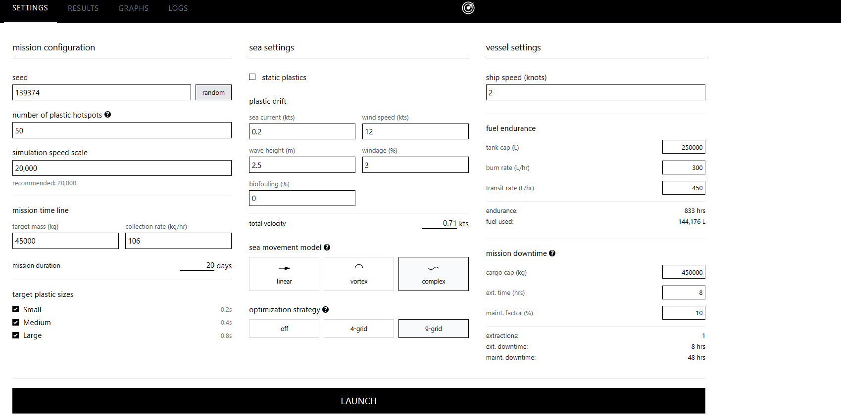 This software stands as the primary analytical tool for the UAV project translating abstract operational theories into concrete logistical data. I built the extensive settings view to allow us to inject specific mission variables such as the fuel tank capacity in liters and the burn rate of the vessel directly into the simulation math. By tracking and rendering this data via the graphs view component we can visualize the operational cost index which is a derivative metric I coded to represent the aggregate cost of fuel and time and mechanical stress. This code provides the necessary proof of concept demonstrating that by using predictive intercept algorithms and optimized fleet coordination we can achieve a collection efficiency that makes the autonomous recovery of marine debris a viable engineering reality.